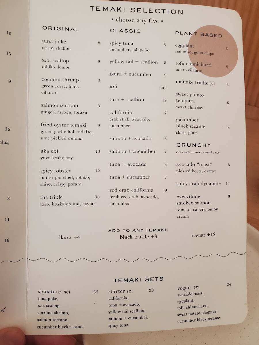 The menu at Nami Nori is both straightforward and enticing, with a focus on hand rolls that express the essence of sushi in a form that's not just sustainable but also shareable. Guests highly recommend the Signature Set, which consists of five distinct hand rolls. Each bite carries the freshness of high-quality ingredients and is beautifully presented, a feast for both the eyes and the palate. Standout options like the Coconut Shrimp hand roll, lauded for its delicious adventure of flavors and textures, deliver a surprising delight even to those who aren’t usually fans of sushi. With a commitment to gluten-free ingredients and an impressive selection of soft drinks, the restaurant ensures all diners feel welcome.